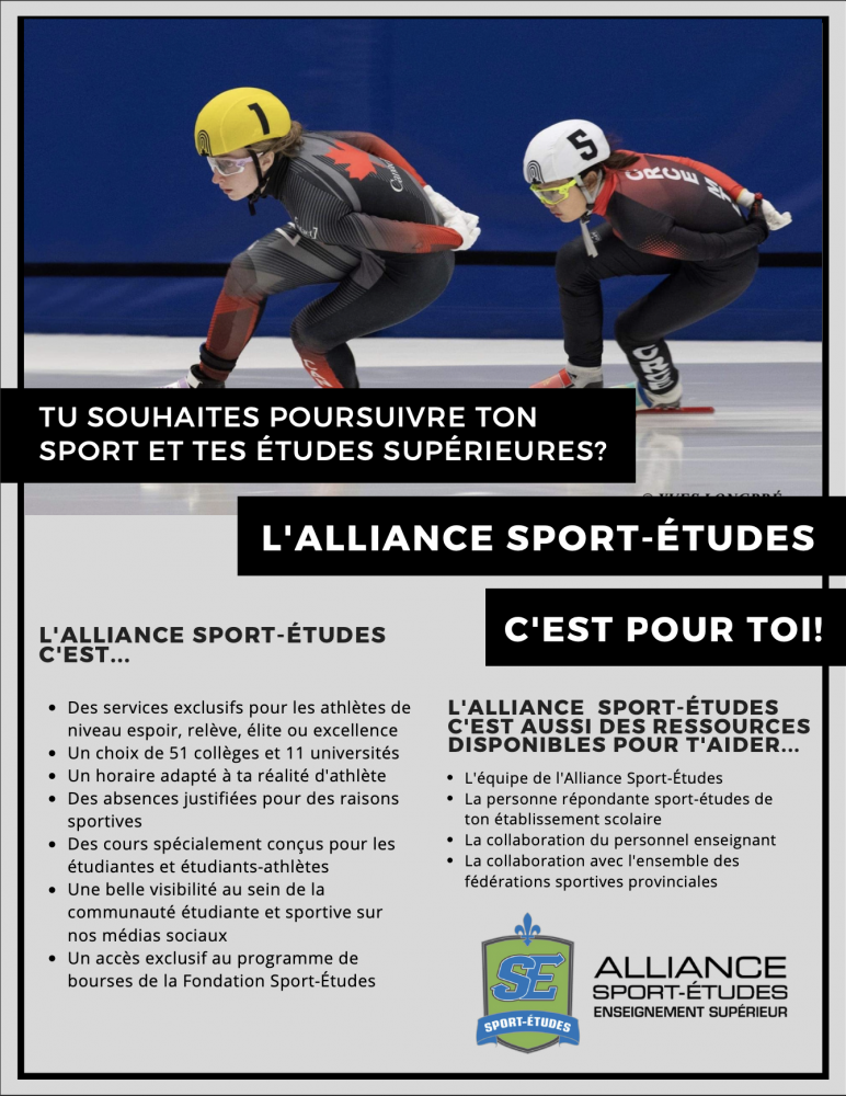 Quoi : La soirée d’information portera sur les services de l’Alliance Sport-Études, sur le processus d’admission à l’Alliance et sur la transition secondaire-collégial en général